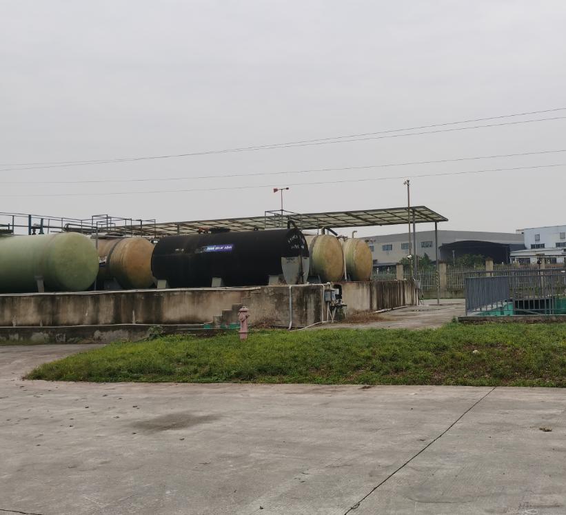 顺着厂内公路往南面走,分别布置有盐酸硫酸罐区。
